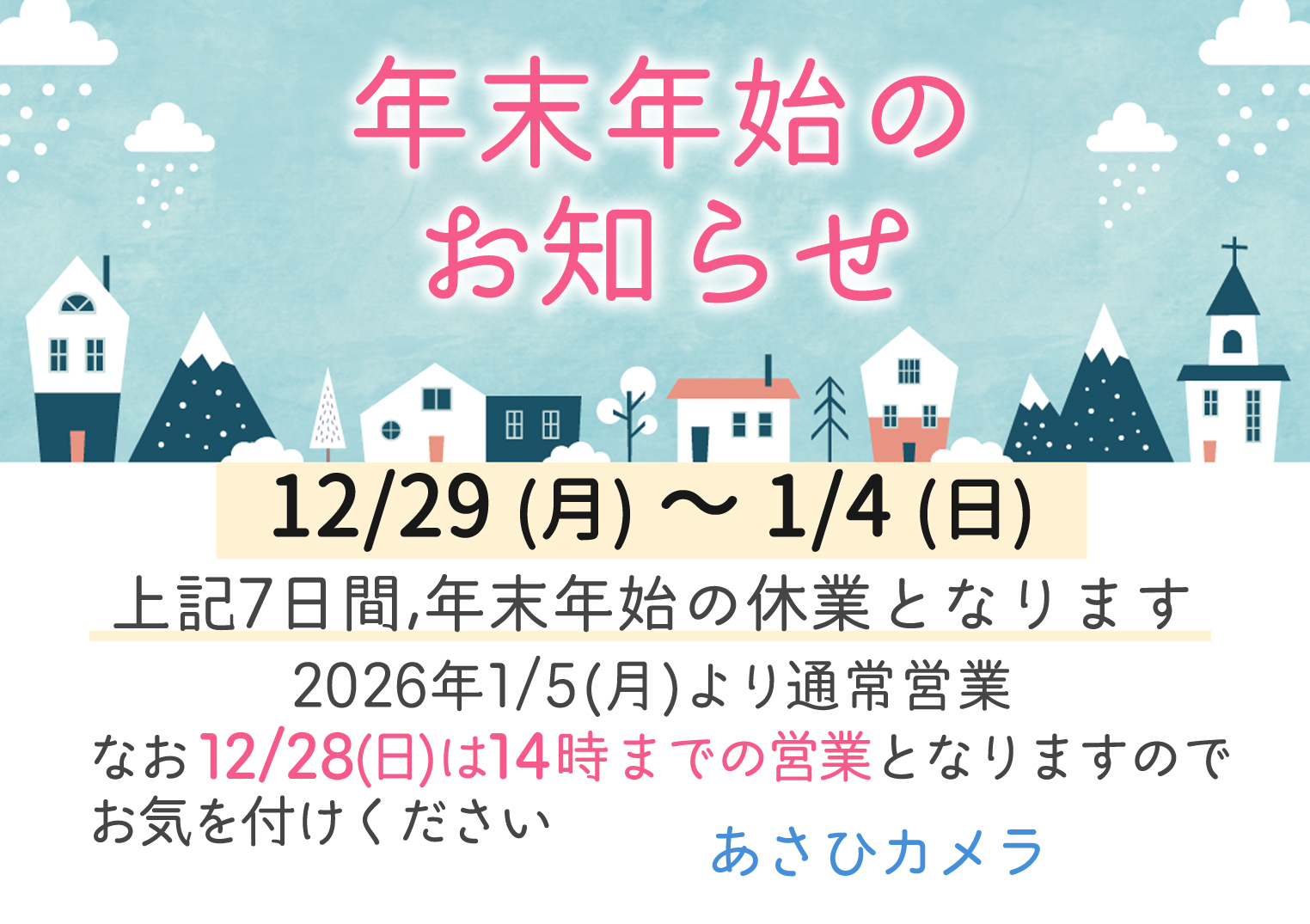 あさひフォトスタジオとあさひカメラの営業日が異なります。